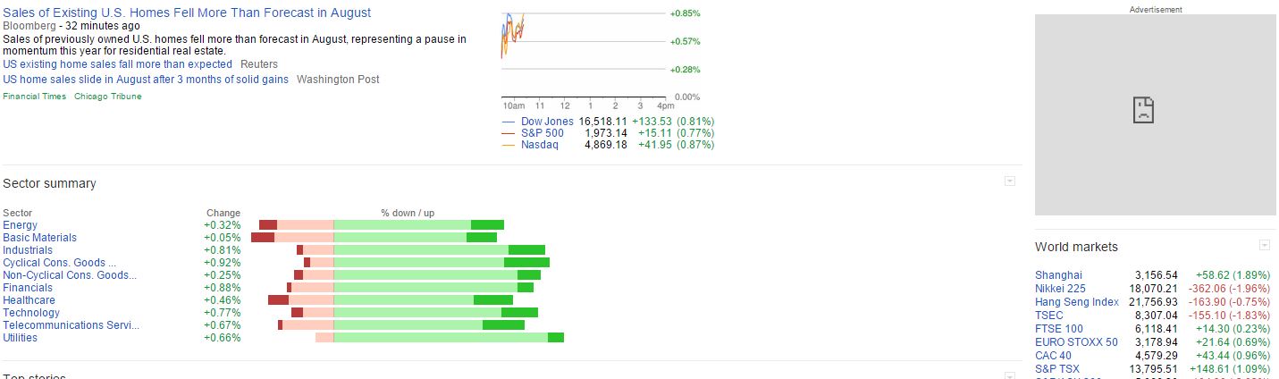 | DJIA | 16433.09 | 16384.79 | -48.30 | -0.3 | -8.1 |