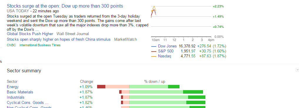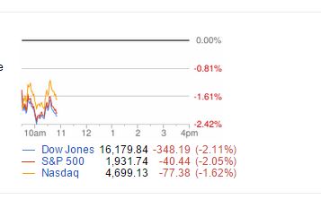 | DJIA | 16643.01 | 16102.38 | -540.63 | -3.2 | -9.7 |