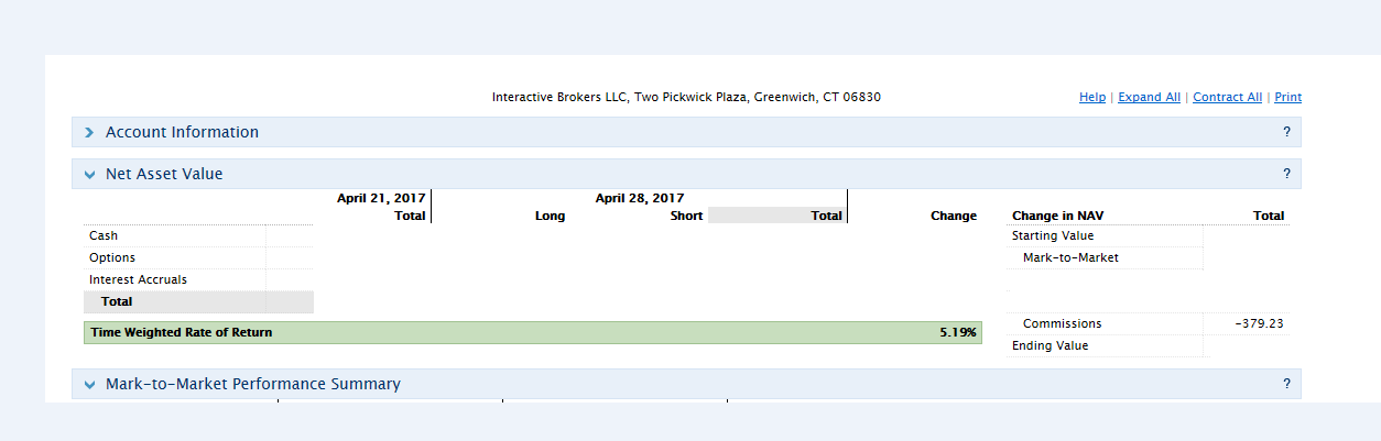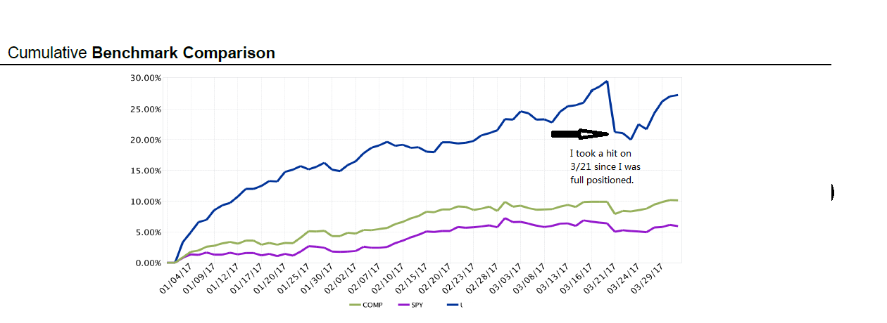 As a result, I've been doing very well. It's the second best week for me this year. ( I held bunch of short position when this week started. I thought that the market might sell off in the last week of April. :-) I acted quickly so that I was in sync with the market.)